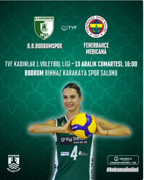 Bodrum’un İncileri sahneye çıkıyor! TVF Kadınlar 1. Voleybol Ligi’nin heyecan dolu atmosferi, 13 Aralık Cumartesi günü saat 16:00’da Bodrum Binnaz Karakaya Spor Salonu‘na taşınıyor. Ligin güçlü ekiplerinden B.B. Bodrumspor, dünya çapında tanınan dev rakibi Fenerbahçe Medicana‘yı kendi evinde ağırlayacak.