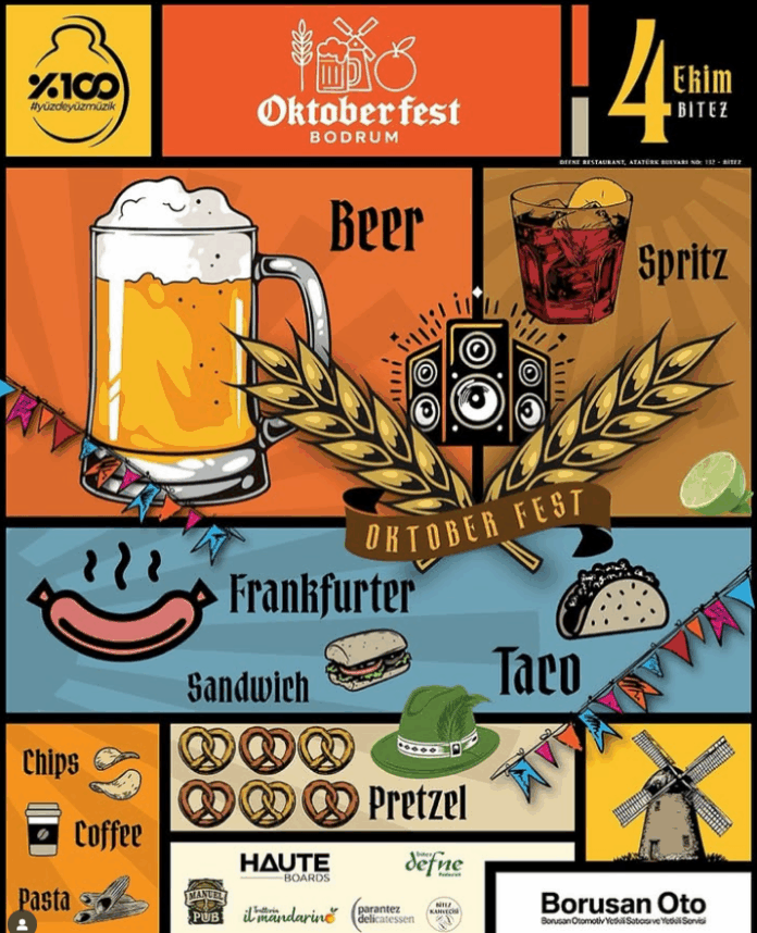 Almanların geleneksel bira ve yiyecek festivali Oktoberfest, Bodrum’un Bitez Mahallesi’ne taşınıyor. Bitez Restaurant önünde düzenlenecek olan bu renkli festival, 4 Ekim Cumartesi günü misafirlerine tam bir lezzet ve eğlence şöleni sunacak.