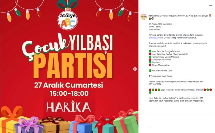 Bodrum’un sevilen mekanı Harika Bitez, 27 Aralık Cumartesi günü Atölye ABC iş birliğiyle çocuklara özel, sürprizlerle dolu bir yılbaşı partisine ev sahipliği yapmaya hazırlanıyor.