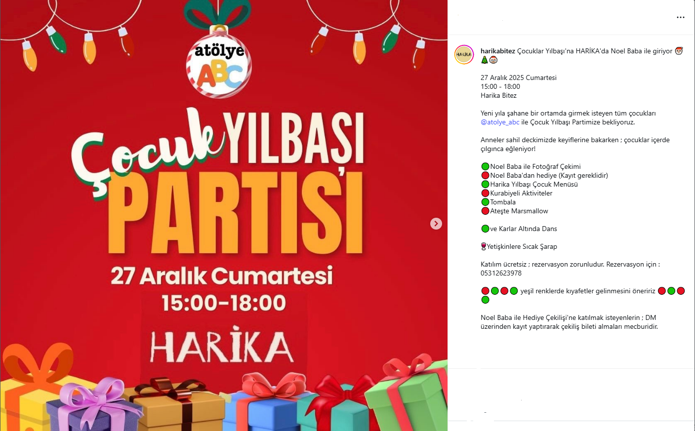 • Hediye Kaydı: Noel Baba’dan hediye almak ve hediye çekilişine katılmak isteyenlerin DM üzerinden kayıt yaptırarak çekiliş bileti almaları gerekiyor.