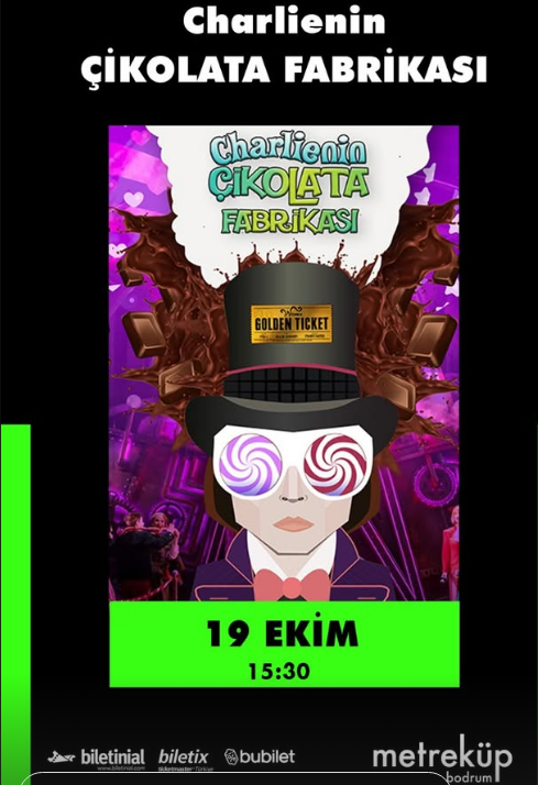 Dünyaca ünlü yazar Roald Dahl’ın klasikleşmiş eseri **”Charlie’nin Çikolata Fabrikası”**nın tiyatro uyarlaması, 19 Ekim Pazar günü çocuk izleyicilerle buluşacak. Metreküp Bodrum‘da saat 15:30’da sahnelenecek oyun, çocukları Willy Wonka’nın sıra dışı fabrikasında unutulmaz bir maceraya davet ediyor.