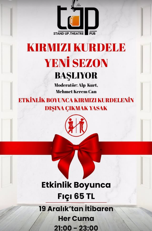 Bodrum’un popüler eğlence mekanlarından The Tap Stand Up Theatre Pub, merakla beklenen konseptiyle kapılarını yeniden açıyor. “Kırmızı Kurdele” temalı etkinlik, yeni sezonun ilk buluşmasıyla Bodrumlu eğlence tutkunlarını bir araya getirmeye hazırlanıyor.