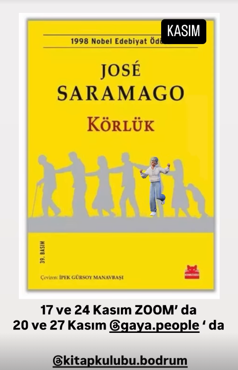 Bodrum’un en aktif edebiyat platformlarından biri olan @kitapkulubu.bodrum, Kasım ayında edebiyat dünyasının dev isimlerinden, 1998 Nobel Edebiyat Ödülü sahibi José Saramago’nun başyapıtı “Körlük” romanını okurlarla buluşturuyor. Okuma ve tartışma etkinlikleri, hem çevrimiçi hem de yüz yüze olmak üzere hibrit bir formatta düzenleniyor.