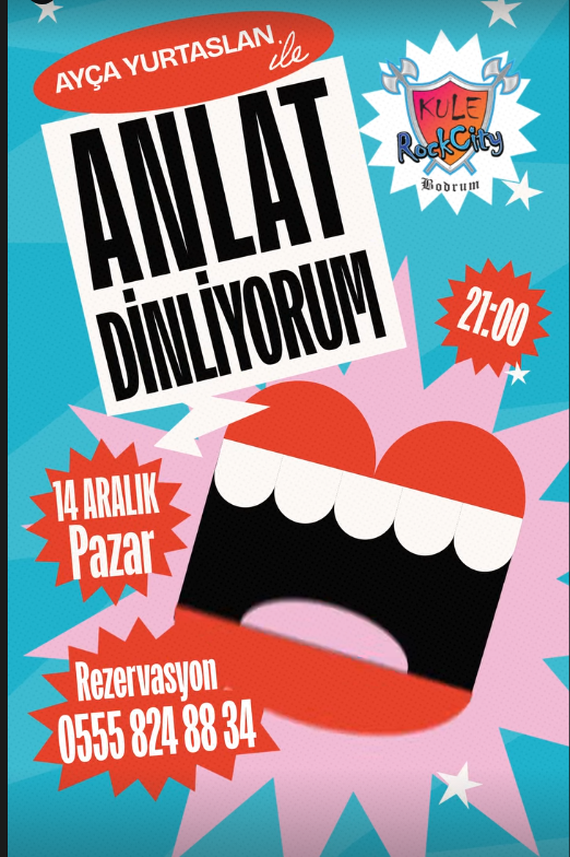 Bodrum’un eğlence nabzının attığı Kule Rock City, 14 Aralık 2025 Pazar gecesi Ayça Yurtaşlan’ı ağırlamaya hazırlanıyor. “Anlat Dinliyorum” konseptiyle gerçekleşecek bu özel etkinlik, Bodrum gece hayatına farklı ve eğlenceli bir soluk getirecek.