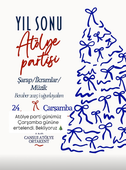 “Beraber 2025’i uğurlayalım” mottosuyla düzenlenen etkinlik, zengin içeriğiyle dikkat çekiyor. Katılımcıları müzik eşliğinde şarap ve çeşitli ikramların sunulacağı sıcak bir atölye atmosferi bekliyor. Sanatın ve dostluğun ön planda olacağı bu gece, yılın yorgunluğunu atmak isteyenler için ideal bir buluşma noktası olmayı hedefliyor.