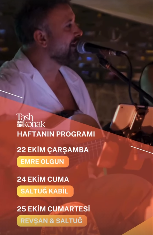 Bodrum’un sevilen mekanlarından Tash Konak, 22-25 Ekim 2025 tarihleri arasındaki haftalık müzik programını açıkladı. Sanatseverler, Çarşamba, Cuma ve Cumartesi akşamları olmak üzere üç farklı gece, birbirinden yetenekli müzisyenleri dinleme fırsatı bulacak.