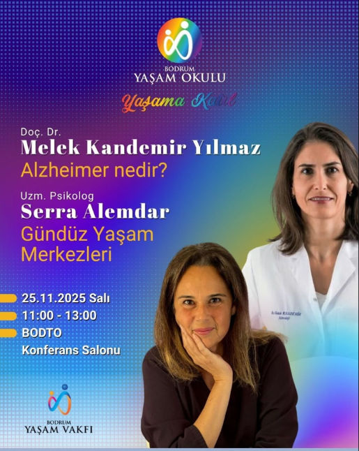 Bodrum Yaşam Vakfı bünyesinde faaliyet gösteren Bodrum Yaşam Okulu, 25 Kasım Salı günü toplum sağlığı açısından büyük önem taşıyan bir etkinliğe ev sahipliği yapacak. Alanında uzman iki önemli isim, Alzheimer hastalığı ve bu hastalar için hayati öneme sahip Gündüz Yaşam Merkezlerini konuşacak.
