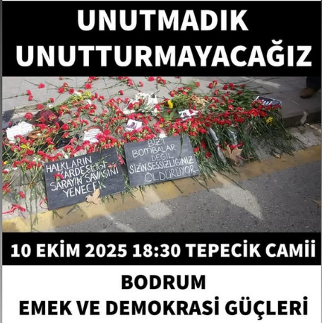Türkiye’nin en kanlı terör saldırılarından biri olan 10 Ekim 2015 Ankara Gar Katliamının yıldönümü yaklaşırken, Bodrum Emek ve Demokrasi Güçleri bir anma etkinliği düzenleyeceğini duyurdu. Yarın gerçekleşecek olan anmada, hayatını kaybedenler anılacak ve barış ile demokrasi talebi yinelenecek.