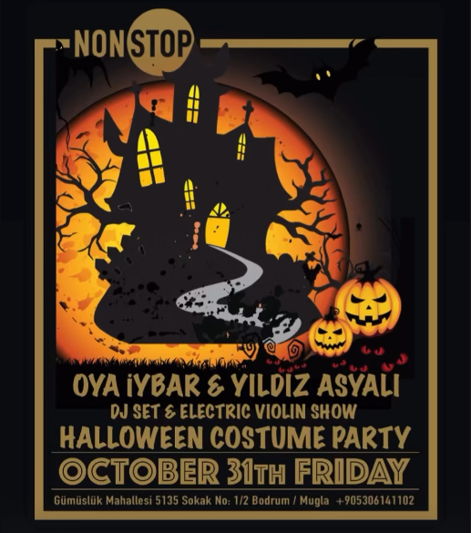 Cadılar Bayramı (Halloween) coşkusu, 31 Ekim Cuma gecesi Bodrum’un Gümüşlük Mahallesi’ne taşınıyor. Yılın en ürkütücü ve eğlenceli gecesi için geri sayım başlarken, Oya İybar ve Yıldız Asyalı ikilisi, müzikseverlere “NON STOP” bir kostüm partisi deneyimi sunmaya hazırlanıyor.