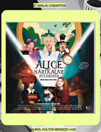 Lewis Carroll’un ölümsüz eserinden uyarlanan oyun, sadece bir tiyatro gösterisi değil; aynı zamanda müzikli ve danslı bir şov olma özelliği taşıyor. Çocukların hayal dünyasını zenginleştiren bu prodüksiyonda, Alice’in beyaz tavşanın peşinden giderek girdiği fantastik dünya, etkileyici dekorlar ve renkli kostümlerle sahneye taşınıyor.