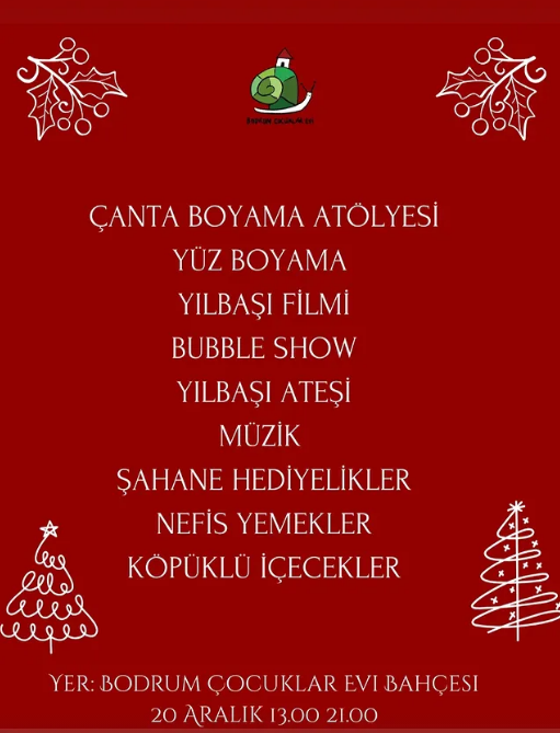Bodrum, yeni yıl heyecanını miniklerle birlikte yaşıyor. Bodrum Çocuklar Evi, 20 Aralık Cumartesi günü kapılarını eğlence dolu bir yılbaşı etkinliği için açıyor. Çanta boyamadan bubble show gösterisine kadar pek çok aktivitenin yer alacağı etkinlik, çocuklara unutulmaz bir gün vaat ediyor.