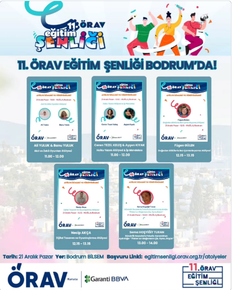 Öğretmen Akademisi Vakfı (ÖRAV) tarafından düzenlenen geleneksel Eğitim Şenliği’nin 11. durağı Bodrum oluyor. 21 Aralık Pazar günü gerçekleşecek etkinlikte, zeka oyunlarından dijital tasarıma kadar pek çok farklı atölye öğretmenler ve eğitim gönüllüleri ile buluşacak.