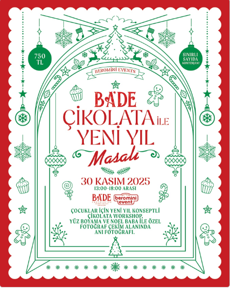Bodrum’un gözde etkinlik ajansı Beromini Events ve Bade Çikolata, 30 Kasım 2025 Pazar günü, çocuklar için unutulmaz bir Yeni Yıl Masalı hazırlıyor. Sınırlı sayıda kontenjanla gerçekleşecek bu özel etkinlik, miniklere hem eğlenceli hem de öğretici bir deneyim sunmayı hedefliyor.