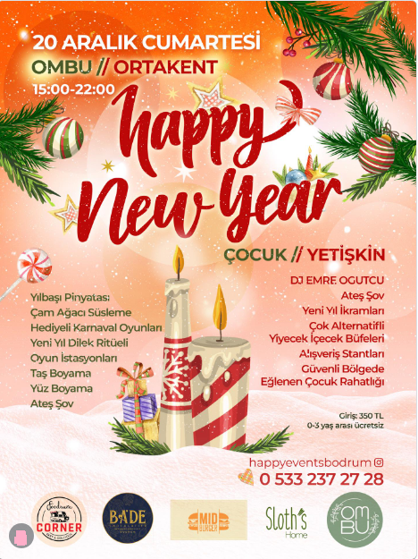 Muğla’nın Bodrum ilçesi, yeni yıl heyecanını erken karşılıyor. 20 Aralık Cumartesi günü Ortakent’te düzenlenecek olan “Happy New Year” etkinliği, hem çocuklara hem de yetişkinlere unutulmaz bir gün vaat ediyor.