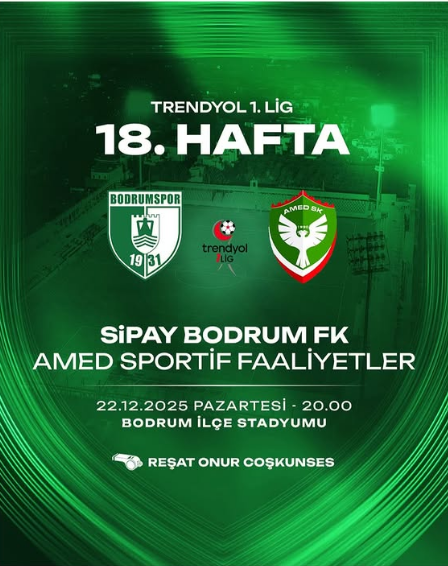 Trendyol 1. Lig’de ikinci yarının perdesi Bodrum’da açılıyor. Ligin iddialı ekiplerinden Sipay Bodrum FK, 18. hafta mücadelesinde Diyarbakır temsilcisi Amed Sportif Faaliyetler ile karşı karşıya gelecek. Play-off hattını yakından ilgilendiren bu kritik mücadele, futbolseverler tarafından büyük bir merakla bekleniyor.