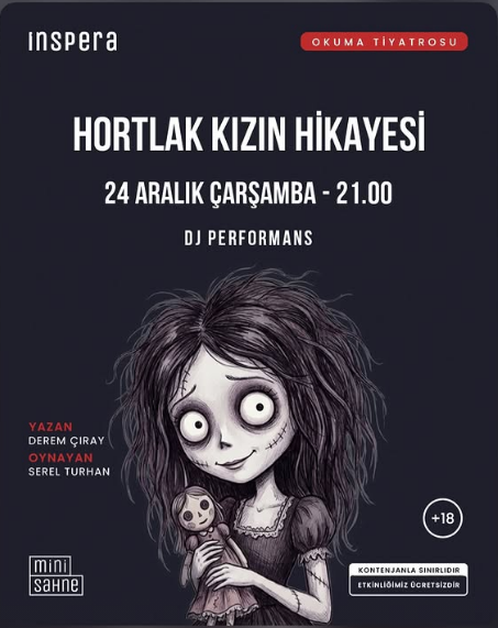 Bodrum’un yeni nesil kültür ve sanat merkezi Inspera, 24 Aralık Çarşamba akşamı sıra dışı bir etkinliğe ev sahipliği yapmaya hazırlanıyor. Yazar Derem Çıray’ın kaleminden çıkan ve geniş yankı uyandıran “Hortlak Kızın Hikayesi”, okuma tiyatrosu formatıyla Mini Sahne’de sanatseverlerle buluşacak.