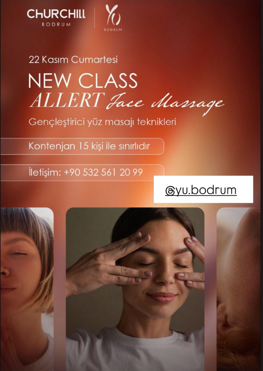 Bodrum’da kendine zaman ayırmak ve gençleştirici güzellik sırlarını öğrenmek isteyenler için harika bir etkinlik duyuruldu. Churchill Bodrum ve Yu Bodrum işbirliğiyle düzenlenecek olan özel “Face Massage” (Yüz Masajı) Sınıfı, katılımcılarına profesyonel teknikleri öğrenme fırsatı sunuyor.