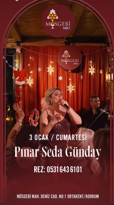 3 Ocak Cumartesi akşamı gerçekleşecek olan etkinlikte, Pınar Seda Günday en sevilen şarkılarını Bodrumlu müzikseverler için seslendirecek. Dekorasyonu ve ambiyansıyla dikkat çeken Müsgebi No:1, misafirlerine hem görsel hem de işitsel bir şölen vaat ediyor. Canlı performansın saat 21.00 itibarıyla başlaması bekleniyor.