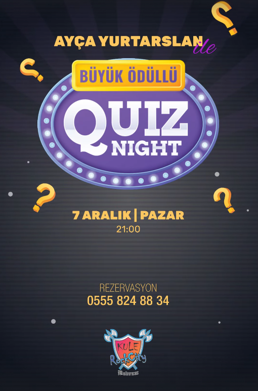 Yoğun ilgi beklenmesi nedeniyle, bu özel Quiz Night için rezervasyon yaptırmak gerekmektedir.