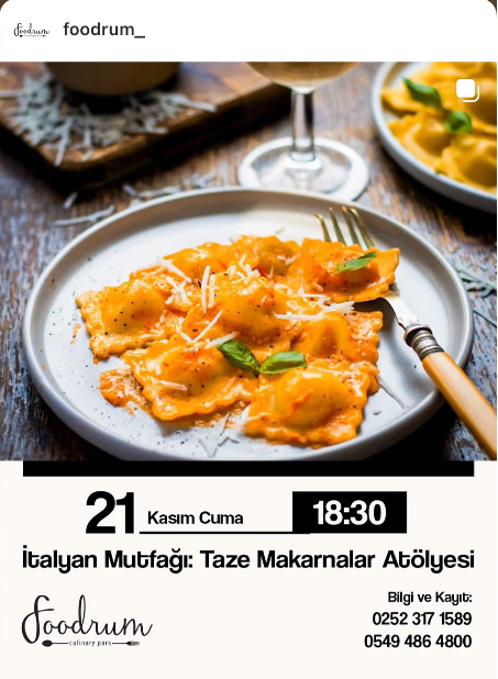 Bodrum’da gastronomi kültürünü sadece tüketim değil, üretim ve eğitim odaklı bir deneyime dönüştüren Foodrum Culinary Park, Kasım ayı etkinliklerine lezzet dolu bir atölye ile devam ediyor. Mutfak sanatlarına ilgi duyanların uğrak noktası olan merkez, bu Cuma akşamı katılımcıları İtalyan mutfağının kalbine götürecek.