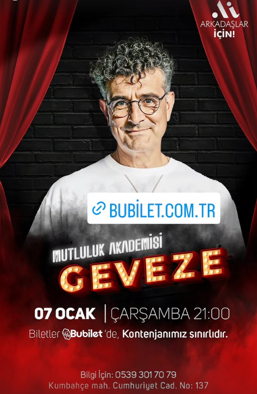 Organizasyon yetkilileri, etkinliğin yoğun ilgi görmesi beklendiği için kontenjanın sınırlı olduğunu vurguladı. Geveze’nin enerjisiyle dolup taşacak bu geceye katılmak isteyenlerin biletlerini Bubilet üzerinden önceden temin etmeleri öneriliyor.