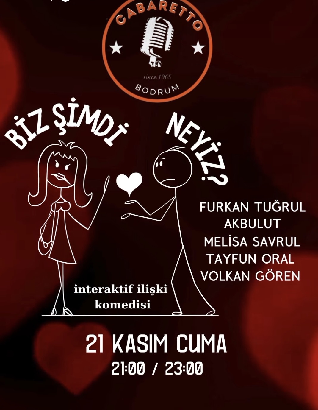 Bodrum gece hayatının klasikleşen adreslerinden biri olan ve 1965’ten bu yana kalitesinden ödün vermeyen Cabaretto, bu Cuma sahnesini müziğe değil, mizaha ayırıyor. İlişkilerin en karmaşık, en içinden çıkılmaz ama bir o kadar da komik halleri, tiyatro sahnesine taşınıyor.