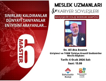 Bahçeşehir Koleji Bodrum Kampüsü’nde gerçekleştirilecek olan bu özel oturumda, Sn. Ali Ata Avame girişimcilik serüvenini ve yaratıcı endüstrilerin iş dünyasındaki yükselen değerini paylaşacak. Kariyer planlaması yapan gençler için rehber niteliği taşıyan etkinlik, “Master 6” programı çerçevesinde düzenleniyor.