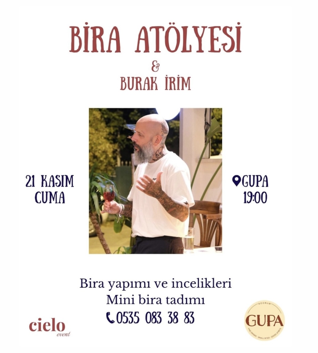 Cielo Event organizasyonuyla hayata geçen etkinlik serisinde bu hafta, 21 Kasım 2025 Cuma akşamı, konunun uzmanı Burak İrim ile keyifli bir “Bira Atölyesi” gerçekleştirilecek.