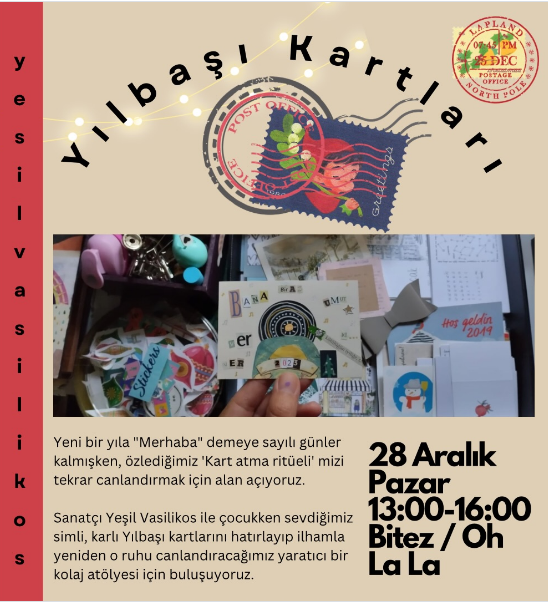 Yeni yıla sayılı günler kala Bodrum, dijitalleşen dünyaya inat nostaljik bir geleneği canlandırıyor. Sanatçı Yeşil Vasilikos eşliğinde düzenlenecek “Yılbaşı Kartları Kolaj Atölyesi”, katılımcıları çocukluk yıllarının simli ve karlı kartpostallarına geri götürecek.