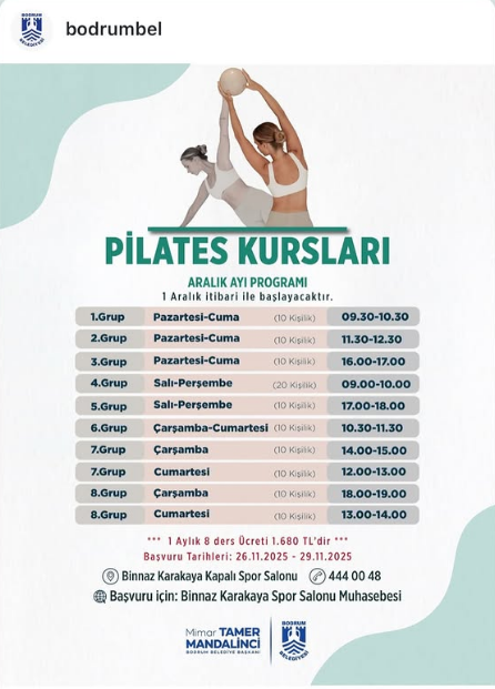 Bodrum Belediyesi, tüm Bodrum halkını sağlıklı yaşam için Pilates kurslarına davet ediyor.