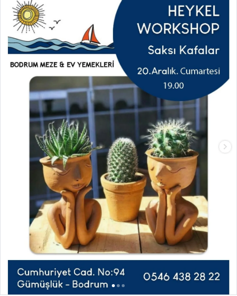 Bodrum’un sanat dolu atmosferi, bu hafta sonu Gümüşlük’te yaratıcı bir etkinliğe ev sahipliği yapıyor. Bodrum Meze & Ev Yemekleri bünyesinde gerçekleştirilecek olan “Saksı Kafalar” Heykel Workshopu, katılımcılara kendi dekoratif objelerini tasarlama fırsatı sunuyor.