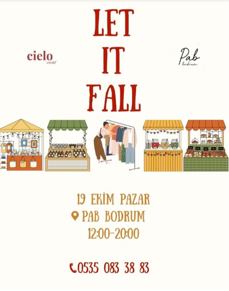 Sonbaharın gelişiyle birlikte, Ege’nin incisi Bodrum’da keyifli bir hafta sonu etkinliği moda, tasarım ve yerel lezzet meraklılarını bir araya getirecek. Cielo Event organizasyonuyla hayata geçirilen ve adını mevsim ruhundan alan ‘Let It Fall’ Sonbahar Tasarım Pazarı, 19 Ekim Pazar günü Pab Bodrum’da gerçekleşecek.