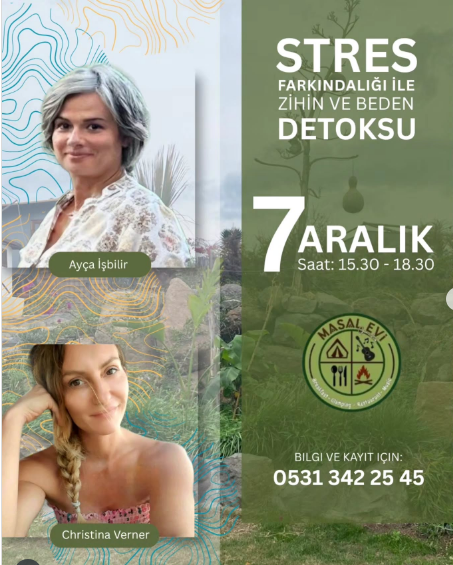 Bodrum’da kişisel gelişim ve farkındalık konularına ilgi duyanlar için benzersiz bir etkinlik düzenleniyor. Ayça İşbilir ve Christina Verner liderliğinde gerçekleştirilecek olan “Stres Farkındalığı İle Zihin ve Beden Detoksu” atölyesi, katılımcılara yeni yıldan önce yenilenme fırsatı sunuyor.