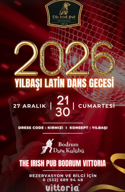 Bodrum, 2026 yılına girmeye hazırlanırken eğlence dolu bir geceye ev sahipliği yapmaya hazırlanıyor. The Irish Pub Bodrum Vittoria’da düzenlenecek olan “2026 Yılbaşı Latin Dans Gecesi”, dans tutkunlarını ve yeni yılı erken kutlamak isteyenleri bir araya getirecek.