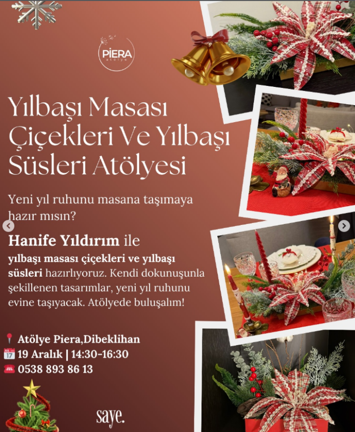 Bodrum’un sanat ve kültür duraklarından biri olan Dibeklihan, yeni yıl ruhunu tasarımla buluşturuyor. Piera Atölye iş birliğiyle düzenlenen “Yılbaşı Masası Çiçekleri ve Yılbaşı Süsleri Atölyesi”, evini kendi dokunuşlarıyla güzelleştirmek isteyenleri bekliyor.