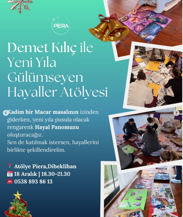 Yeni bir yıla başlarken niyetleri görselleştirmek ve hedefleri somutlaştırmak amacıyla düzenlenen atölyede, katılımcılar kadim bir Macar masalının rehberliğinde kendi “Hayal Panolarını” (Vision Board) oluşturacaklar. Bu yaratıcı süreç, bireylerin yeni yıl için kendilerine bir nevi pusula hazırlamalarına olanak tanıyor.