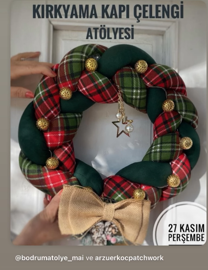 ılbaşı ruhunu evinize taşımak için kendi el emeğinizle eşsiz bir dokunuş yapmaya ne dersiniz? @bodrumatolye_mai ve @arzuerkocpatchwork işbirliğiyle düzenlenen Kırkyama Kapı Çelengi Atölyesi başlıyor!