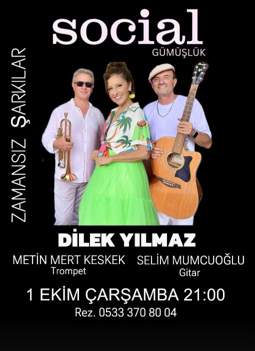 Popüler tatil beldesi Gümüşlük, müzikseverleri bekleyen özel bir etkinliğe daha ev sahipliği yapmaya hazırlanıyor. Sahne performansları ve güçlü sesiyle tanınan Dilek Yılmaz, yarın akşam, 1 Ekim Çarşamba günü Social Gümüşlük‘te dinleyicilerle buluşacak.