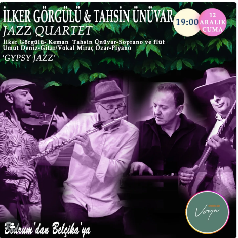 Bodrum, müziğin evrensel diliyle uluslararası bir buluşmaya hazırlanıyor. Keman virtüözü İlker Görgülü ve soprano/flüt sanatçısı Tahsin Ünüvar‘ın liderliğindeki Jazz Quartet, 12 Aralık Cuma akşamı saat 19:00’da Bodrum’da unutulmaz bir konser verecek. Konser, müzikseverleri “Bodrum’dan Belçika’ya” uzanan coşkulu bir Gypsy Jazz yolculuğuna çıkaracak.