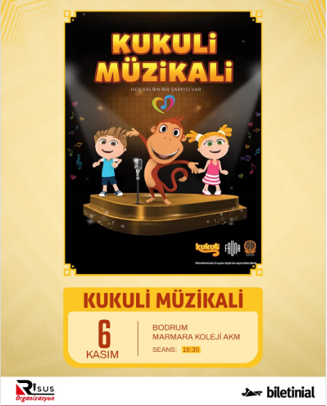Milyonlarca çocuğun severek izlediği ve şarkılarına eşlik ettiği çizgi film karakteri Kukuli ve arkadaşları, eğlenceli müzikal gösterileriyle Bodrum’a geliyor. Risus Organizasyon tarafından düzenlenen Kukuli Müzikali, minik izleyicilere unutulmaz bir gün yaşatmaya hazırlanıyor.