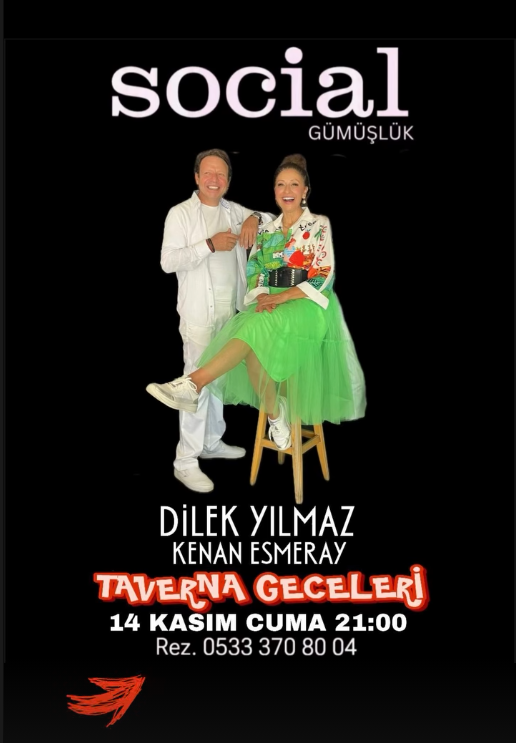 Bodrum Gümüşlük‘ün sevilen mekanı Social Gümüşlük, müzikseverleri nostaljik ve coşkulu bir geceye davet ediyor! Güçlü yorumcu Dilek Yılmaz ve usta piyanist Kenan Esmeray, 14 Kasım Cuma akşamı sahne alarak Bodrumlulara “Taverna Geceleri” konseptiyle unutulmaz anlar yaşatacak.