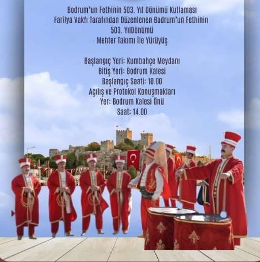 Bodrum’un Osmanlı topraklarına katılışının 503. yıl dönümü, bugün düzenlenecek özel etkinliklerle kutlanıyor. Farilya Vakfı tarafından organize edilen program kapsamında Mehter Takımı yürüyüşü ve protokol konuşmaları gerçekleştirilecek.