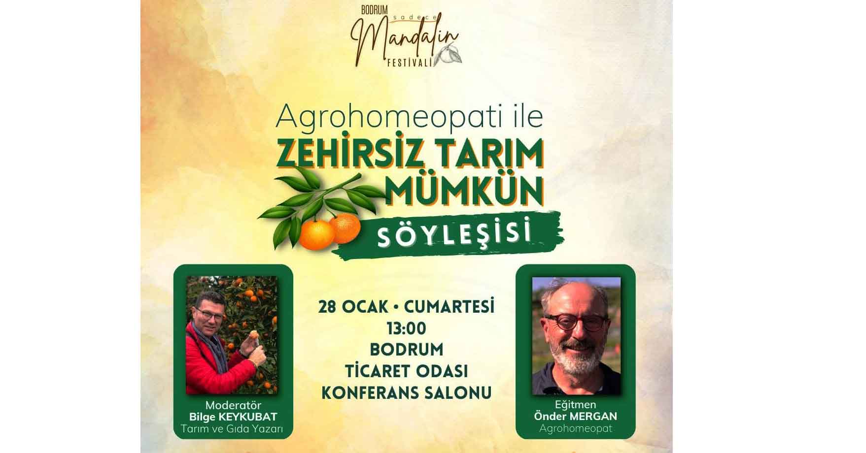 “Sadece Mandalin Festivali” kapsamında 28 Ocak Cumartesi günü Bodrum Ticaret Odası (BODTO) Konferans Salonunda “Agrohomeopati ile Zehirsiz Tarım Mümkün” konulu bir söyleşi gerçekleşecek.
