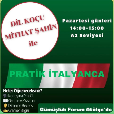 Bodrum’un kültürel yaşam merkezi Gümüşlük Forum Atölye, dil öğrenimine meraklı olanlar için yeni bir programa ev sahipliği yapıyor. Deneyimli Dil Koçu Mithat Şahin rehberliğinde, temel düzeydeki katılımcılara yönelik Pratik İtalyanca dersleri başlıyor.