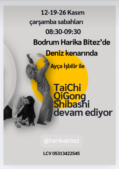 Bodrum’un eşsiz güzellikteki Bitez sahili, 12 Kasım’dan itibaren her Çarşamba sabahı dinginliğin merkezi haline geliyor. Uzman eğitmen Ayça İşbilir eşliğinde, TaiChi, Qigong ve Shibashi çalışmaları, Harika Bitez‘de deniz kenarında başlıyor.