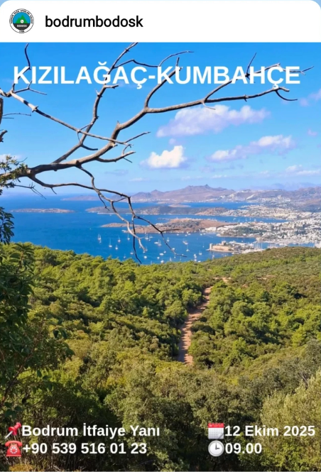 Doğa yürüyüşü, 12 Ekim 2025 Pazar günü sabah saat 09:00‘da Bodrum İtfaiye Yanı’ndan hareketle başlayacak. Etkinlik, Bodrum’un panoramik manzaralarını sunan, yaklaşık 10 kilometrelik Orta-Zor zorluk derecesindeki Kızılağaç-Kumbahçe parkurunda gerçekleştirilecek. Bu parkur, yürüyüş deneyimi ve kondisyonu olan katılımcılar için uygun olarak belirlendi.