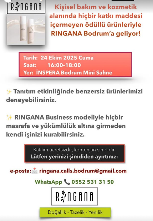 DOĞALLIK VE TAZELLİK BODRUM’A GELİYOR: RINGANA Ürün Tanıtım Etkinliği ve İş Fırsatı