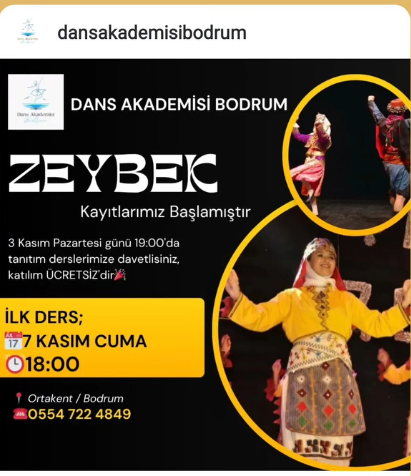 Geleneksel Ege kültürünün en coşkulu figürü olan Zeybek’i öğrenmek isteyenler için Bodrum’da heyecan verici bir fırsat doğdu. Ortakent’te faaliyet gösteren Dans Akademisi Bodrum, yeni Zeybek kursu kayıtlarını başlattığını duyurdu.