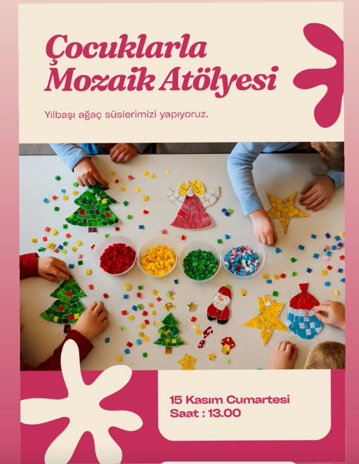 Bodrum’da sanatsal ve eğlenceli bir hafta sonu etkinliği için geri sayım başladı! Minik sanatçılar, 15 Kasım Cumartesi günü düzenlenecek olan **”Çocuklarla Mozaik Atölyesi”**nde bir araya gelerek, yaklaşan yılbaşı için kendi elleriyle yılbaşı ağacı süslerini hazırlayacaklar. Bu özel atölye, çocukların el becerilerini ve yaratıcılıklarını geliştirirken, onlara mozaik sanatının renkli dünyasını tanıtmayı hedefliyor.