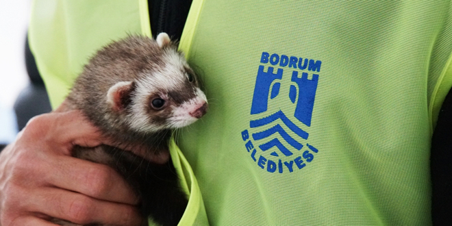 Bodrum’da vatandaşlarca fark edilen feret, Bodrum Belediyesi Torba Geçici Hayvan Bakımevi’nde ilgi odağı oldu.